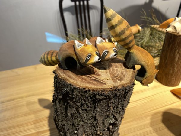Hand-carved Solid Wood Raccoon Ornament with Swinging Design